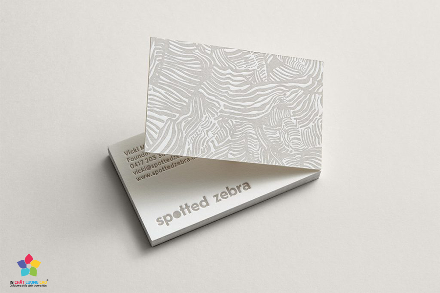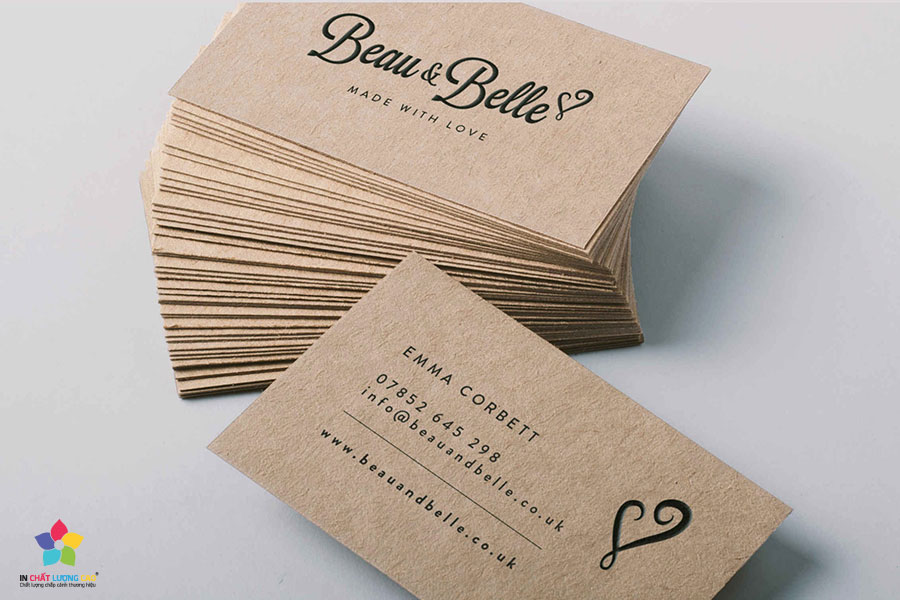 – In name card có chữ nổi, ép nhũ màu kim loại trên bề mặt. Hoặc card visit được in trên giấy mỹ thuật cao cấp hay theo dạng in thẻ nhựa PVC